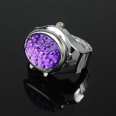 Stainless Steel Silvery Ring Watch with Oval-shaped Gemstone Cover