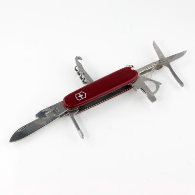 Knife, can opener, scissors, wood bottle opener, Hook, screwdriver, magnifier etc.