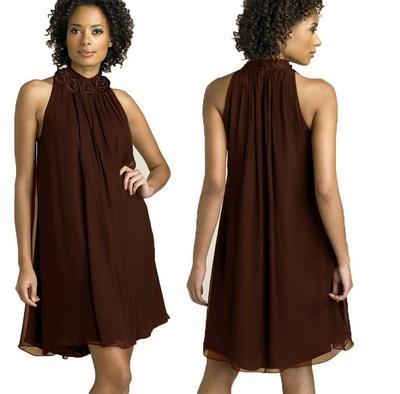 面料: 雪纺 尺码: 2xl 胸 42'-44 (106-111CM) 腰 36-38 (91-96CM) 臀 44-46 (111-116CM) 颜色: 咖啡