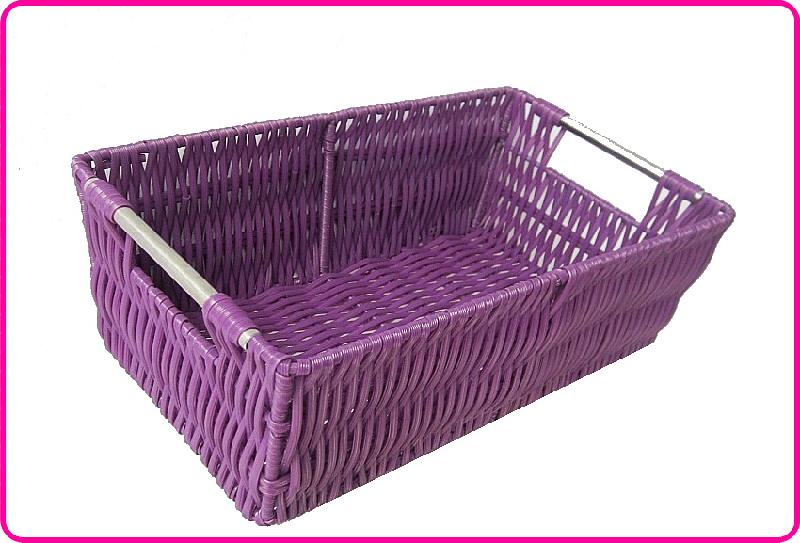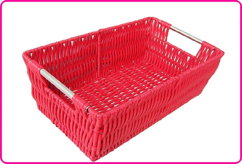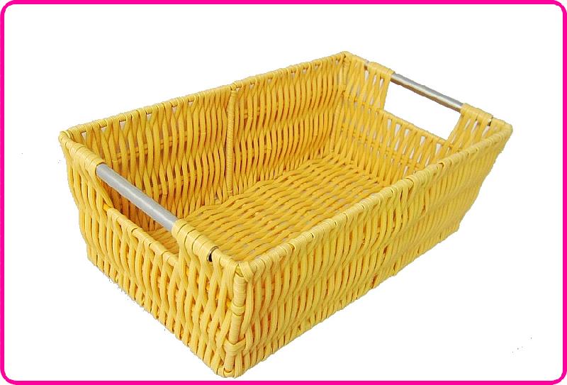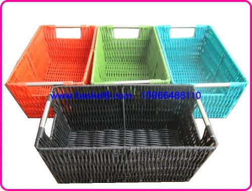 编织篮子为矩形, 纯手工编织工艺, 金属框架喷塑防锈处理, 坚固耐用.