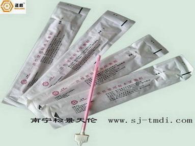 一次性使用无菌宫颈采样器是供应临床宫颈细胞采样后, 进行涂片使用, 该产品依据妇女宫颈解剖学结构设计, 外形贴切宫颈解剖结构, 产品由分离式采样头和采样柄两部分组成, 为国际通用标准产品, 它摒弃了目前临床使用的小脚宫颈刮板质地硬易造成宫颈损伤, 细胞易丢失等缺点, 产品有质地柔软, 对宫颈粘膜无任何损伤, 细胞完全保存及操作, 分析简便等优异功能, 实现妇科宫颈检查新的飞跃.