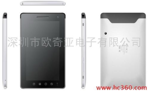 NC07 SPEC产 品 规 格中央处理器高通Qualcomm MSM7627内存512 (RAM) 硬盘512MB (ROM) 无线网卡IEEE 802.11 B/ G3G模块及通讯-1CDMA2000/ 1xEV-DO: 800/1900MhzGSM/ GPRS/ EDGE/ 850/900/1800/1900 EVDO+GSM 双卡双待3G模块及通讯-2CDMA2000/ 1xEV-DO: 800/1900Mhz or UMTS 850/1900/2100MhzGSM/ GPRS/ EDGE/ 850/900/1800/1900 EVDO+GSM 双卡单待蓝牙V2.1+EDR 摄像头前0.3M, 后3.0M 录像VGA (640 * 480) 重力感应器支持 音频 MP3; AAC; WAV; AMR; MIDI视频播放文件: 支持常见文件格式; 如mp43gp等; 但wmv不支持视频解码: MPEG4, H. 263, H. 264音频解码: MP3, AMR-WB/ +, AAC, AAC+™, EAAC+图片JPG, PNG, BMP, GIF, TIF电池聚合物电池3500mAh电源适配器5.3 V, 1500MH3.5mm声音和麦克风接口1个电源输入接口1个SIM卡插槽按键开关Power键Reset键Volume键Menu键Back键home键操作系统Android 2.2 工作环境5摄氏度 至 35摄氏度, 30% 至 90%湿度存储环境 -20摄氏度 至 60摄氏度, 10% 至 90%湿度