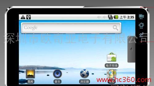 文件系统容 量4GB (FAT32磁盘格式) 扩 展支持最高32GB TF'SD卡扩容系 统android 2.2 采用 CORTEX A8 方案+512M DDR+1G主频显示系统显 示 屏7英寸1024*600高分辨率高清屏 , 电容触摸屏菜单语言简体中文, 英语, 繁体等常见语言网络功能浏览器ANDRIOD2.2 webkit内核Flash支持Adobe Flash lite 10.1版本插件视频聊天QQ, MSN, 手写输入 (第三方软件) , 在线视频播放 (YOUKU) ,办公软件WORD, EXCEL, POWERPOINT, PDF, TXT. (第三方软件) 3G支持3G功能; 内置; 外置3G模块可选摄像头内置300万像素的摄像头PCIE后置PCIE接口; 可以售后用户自己增加3G PCIE模块GPS内置GPS导航模块; 并支持AGPS帮助导航 (功能可选) 游 戏 象棋; 扑克牌; 扫雷等等 (第三方软件) 音频播放支持格式支持MP3; WMA; MP2; OGG; AAC; M4A; MA4; FLAC; APE; 3GP; WAV格式音频播放信噪比大于90dB录音功能支持MP3; WMA格式录音其它LRC歌词同步; 专辑图片; 自定义音效 (第三方软件) 视频播放支持格式支持720P的AVI (H. 264, DIVX, DIVX, XVID) , rm; rmvb; MKV (H. 264, DIVX, DIVX, XVID) ,WMV; MOV; MP4 (.H. 264, MPEG, DIVX, XVID) ,DAT (VCD格式) ,VOB (DVD格式) ,PMP, MPEG, . MPG, , FLV (H. 263, H. 264) ,ASF , TS, TP, 3GP, MPG等30种格式以上. 播放能力网络最高分辨率1280X720视频输出HDMI 480P至720P输出与普通AV输出显示宽高比 显示宽高比可自定义选择 4: 35: 416: 9; 全屏; 原始比例等选择播放器独有的HD PLAYER; 可实现随意拖动进退播放 (第三方软件) 附加功能G-sensor支持触控多点电容触控文本阅读 支持更换字体, 字体颜色, 背景颜色, 书签功能, 支持边听音乐, 看图片边看电子书等功能图片浏览支持JPG, BMP, PNG, GIF等各种图片格式浏览并支持旋转/ 幻灯片播放, 最高支持到4096*4096分辨率外放功能双喇叭左右声道外放其 他重力感应; 手势两点触控, 支持歌曲列表; 支持双线程操作; 支持固件升级功能; 视频即点即播, 自定义桌面, 更换字体颜色, 图片浏览/ 旋转, 等独特功能设置. 接 口OTG数码伴侣通过DOKING转换USB, 支持 外挂硬盘, 数码相机, 手机, U盘, 读卡器等数据相互共享, 支持连接打印机等OTG功能HDMI通过DOCKING转换HDMI 标准mini接口, 支持HDMI1.3USBUSB2.0高速充电小型充电器插口, DC5V输入耳机/ 外接话筒3.5mm耳机+外接话筒其他说明体 积 192*115*12mm重 量370g电 池3000mAh / 3.7V 锂电池续航时间 插上耳机6个小时电影播放, 20个小时以上音乐播放, HDMI输出播放时间达10小时以上操作系统 Android 2.2产品温升小于30度