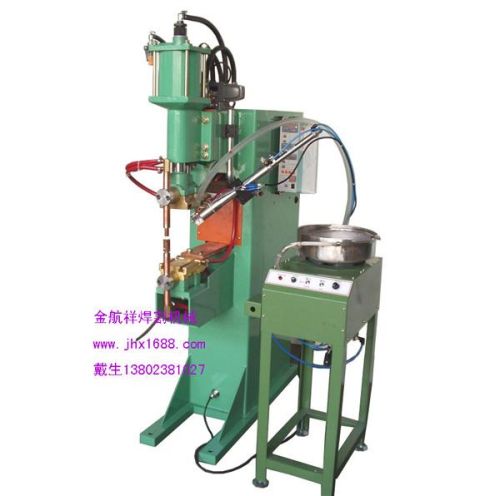 此种机器是空压式点焊机配合振动盘进行自动送料, 自动焊机, 达到全自动化, 省时省力, 高效, 高质.
