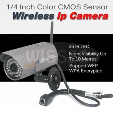 1/4 Inch Color CMOS Sensor Water-proof, Security CCTV Wireless IP Network Camera, 36 IR LEDs, Night Visibility Up To 10Metres, Support WEP WPA Encrypted