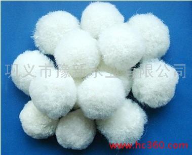 我公司生产的新型纤维球有以下性能和特点: 本产品选用高醛化维呢纶, 定型涤纶丝为原料. 用自身表面所沾附的大量生物团与充氧, 污水反复接触, 使废水中的悬浮物及有机物降解而达到处理目的. 它的特点在于: 1. 质轻, 强度高, 物理化学性能稳定, 经久耐用. 2. 随水飘动的纤维丝, 使填料之间空隙可变, 不易被生物膜堵塞. 3. 比表面积大, 活性强, 处理效果好.