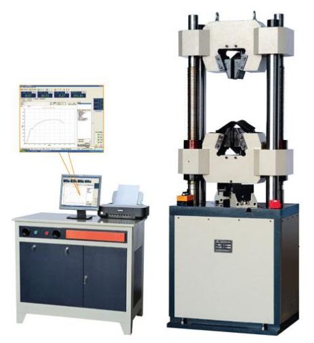 本机主要用于金属, 非金属材料之拉伸, 压缩, 弯曲和剪切等力学性能试验, 本机配有计算机, 打印机, 电子引伸计, 光电编码器及通用试验软件, 可以准确测定金属材料的抗拉强度, 屈服强度, 规定非比例延伸强度, 延伸率, 弹性模量等力学性能. 试验结果可以查询和打印 (力-位移, 力-变形, 应力-位移, 应力-变形, 力-时间, 变形-时间) 六种曲线及相关试验数据, 具有软件自检功能, 能自诊断故障, 详见软件说明. 是工矿企业, 科研单位, 大专院校, 工程质量监督站等部门的理想检测设备.
