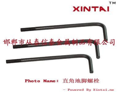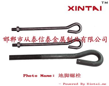 详细说明: 心态金属制品有限公司可生产螺纹直径12-120mm的地脚螺栓, 长度不限, 材质有: Q23545#, Q345B, 40Cr, 35CrMoA等, 地脚螺栓按类型可为直钩式, 弧钩式, 锚瓜式和加劲锚板式, 欢迎订购.