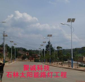 云南石林太阳能路灯由云南聚诚科技有限公司根据云南省昆明市石林风景区的特殊情况设计生产的: 配置为光伏组件120WLED光源40W太阳能路灯高度7.5米蓄电池为太阳能路灯专用100AH.