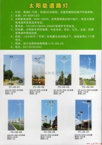 产品名称: 6米直杆路灯 光源/ 功率: LED 21W 组件功率: 60Wp/ 17.3V * 2 蓄电池: 密封铅酸电池 55AH/ 12V * 2 控制方式: 光控7.5小时工作 亮灯时间: 7.5小时 阴雨天: 3-6天
