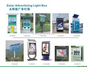 云南聚诚能源生产太阳能广告屏/ 太阳能广告牌/ 太阳能广告灯箱电源系统由: 1. 独立小型太阳能光伏发电系统; 太阳能光伏电池组, 蓄电池以及控制系统等组件. 2. LED显示屏/ LED超薄灯箱, 全自动控制 (光控/ 时控) ,多种自动控制方案; 应用于车站, 港口, 商业广场, 公司招牌广告, 轮船上等单位场所. 我司的太阳能广告屏采用高纯度的单晶硅太阳能电池板采集电能, 采用超高亮LED作光源. 太阳能广告牌产品优点: 无需拉电源, 低压直流供电安全, 搬迁容易, 自动控制, 一般无需维护!另外我公司利用太阳能光能转换成电能进行供电产品有太阳能指示牌系列, 太阳能广告屏系列, 太阳能广告灯箱系列等产品. 欢迎定做!