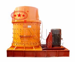 The materials vertically falls into the high speed ration impeller through the upper combination crusher, under the impact of high-speed centrifugal force and together with another part shunting in the umbrella form around the impeller, and thus producing impact and crushing. After the materials being collided with each other, they will be crushed by multi-colliding and friction between the impeller and casing in the form of material vortex, the materials will be straightly discharged through the bottom, forming a closed multiple cycles for the purpose of achieving the required finished size that controlled by the screening equipment.