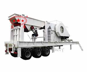The portable crusher can operate independently and can also work together with other machines aiming at the coarse crushing and fine screening. The side-discharging of discharge hopper supplies multimode configuration of screening and transporting materials. The integrative diesel generator can supply power to the machine frame itself as well as the process system configurations.