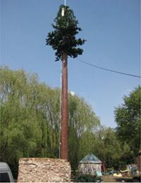 加入意向仿生通讯塔, 属于通讯发射塔技术领域. 是让通讯铁塔与周围的环境相协调, 有效的解决了风景区等建站的问题, 其优点是保持了原有单管塔的所以优点, 在其外形上作了重大的突破, 改进, 以自然生长松树, 樟树等为仿真的造型样本, 设计素描图和电脑效果图, 制定雕塑和喷涂工艺程序, 对单管塔仿真伪装, 使人们擦觉不到塔的存在, 把它融入了周围的自然环境中. 仿生塔是我公司制作景观塔的基础上派生出来的一种新型塔种. 我公司制造出仿客松, 仿椰树, 仿棕桐树等多种仿生杆塔, 安装在一些风景区内, 经使用得到了建设方及旅游观众们的一致好评. 仿生塔相对其它通讯塔具有以下优点: 1, 结构精致逼真, 外形美观. 由于外形酷似真实仿物, 制作精细, 且安装在风景区, 公园, 广场与其树种相似的树丛中, 贴近自然且融于自然, 新颖独特的大线架替了传统的平台隐藏在枝叶中不会破坏塔身的整体美, 仿生塔人性化的外形设计, 具有生机勃勃的时代气息. 2, 结构稳定性强, 技术性好. 塔基采用独立式钢筋混凝土结构, 可有效的避免地基不均匀下沉; 馈线固定夹板设在塔体内部, 馈线免受风吹日晒, 有效是解决了馈线破坏因素, 从而延长了使用寿命; 塔体每段均采用精加工的法兰连接, 保证了同心度和垂直度, 避免了其它连接方式的安全隐患. 3, 占地面积小, 经济效应显著. 塔体采用锥形单管塔结构, 占地面积1-2米见方, 基础在4-6米见方, 且无须建基站围墙, 从而减少了用户的征地面积, 节约了成本 (尤其在城镇) . 4, 使用寿命长, 外观效果持久. 由于塔体受破坏外力相对较小, 且结构合理, 用料精良, 所以铁塔使用期限较长; 表面采用热镀锌, 防腐蚀性能好, 在其表面装有仿真树皮, 是一种集防火, 防水, 防腐蚀的一种高级复合型材料制造而成, 可保证其外观长期不脱落.