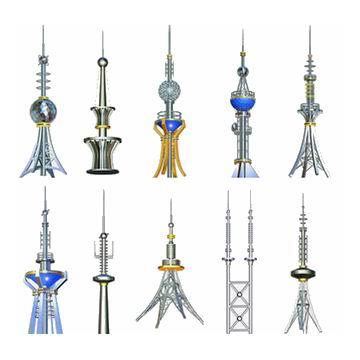 加入意向工艺塔, 装饰塔多建于楼顶之上, 它集避雷, 通讯, 装饰于一体, 塔体内部材料主要采用角钢, 钢管结构, 其材质为普通碳素钢符合Q235型钢, 塔体外包不锈钢板. 装饰塔主要功能: 装饰: 塔体的造型新颖别致, 塔体外部包有不锈钢板或钛金板, 塔体上部安装有各种不锈钢环, 白天在阳光的照射下, 闪闪发光, 高贵无比, 夜色降临与LED灯光相映, 更加使建筑物美轮美奂. 避雷: 在塔的上端安有国产/ 进口雷电接闪器避雷针, 以有效的保护建筑物不被雷击. 通信: 塔上有安装各种通信天线的位置, 可满足各种无线通信的要求, 以后还可实现防盗, 防火, 无线联网等功能. 塔体钢构件热镀锌防腐处理. 保证50年不生锈. 技术参数符合以下规定: 设计风速: 30m/ s (各地区不同) 裹冰: 5mm-7mm (各地区不同) 抗震烈度: 8° 适宜温度: -35摄氏度~45摄氏度 垂直偏差: (1/1000 材料产地: 宝钢 首钢 邯钢 唐钢 太钢等 有效使用期: 30年以上 售后服务: 1年免费维修