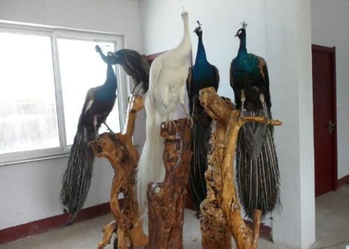 孔雀标本是有我场采用独特的工艺, 先进的技术, 手工生产的标本工艺品. 具有造型逼真, 形态各异, 栩栩如生, 无毒防腐, 保存期长等特点. 象征着锦绣前程, 步步高升, 兴旺发达, 锦上添花之意. 用于家庭装饰, 办公摆设, 生机倍增, 令人赏心悦目, 蓬荜生辉, 大大提升了艺术品位. 作为礼品高贵, 典雅, 珍稀, 很上档次, 价格又便宜, 效果非名烟, 酒所能比. 因此孔雀标本是家居装饰, 赠与的极品