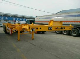 大梁: 直梁; 高500mm; 上14mm下16mm立板8mm (或6mm高强) ,边梁14mm冷弯; 集装箱锁头数量随车辆型号装配, 2个吊链式备胎架, 40尺骨架1个1.2米工具箱; (锁头为8个和12个锁头) ,90#牵引销; 28T富华联动支腿; 60销标准悬挂; 车桥: 13T富华桥16T刹车; 10片标准板簧; 4双2单气室; 灯具: 全部LED灯9.0-22.5钢圈; 12R22.5真空胎.