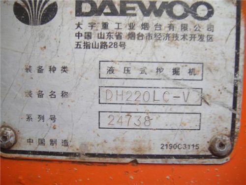 | DAEWOO DH220LC, hydraulic excavator, in orange, very good condition, a reasonable price Bucket capacity, 0.8m3 Engine power, 108kw Walking speed, 5.5km/ h The min ground clearance, 480mm The hydraulic oil box capacity, 208L Rated drawbar pull, 200.9kN For more details, call us, by e-mail or skype-Yvette Liu, happy to communicate with you! | |