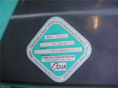 | KoBelco SK200, green, not brand new The highest turning speed, 11.0rp/ m Standard bucket capacity, 0.8 m3 The hydraulic pump setting pressure, 34.3pa The maximum diesel box capacity, 340L For more information or other serials, contact us now, glad to communicate with you! | |