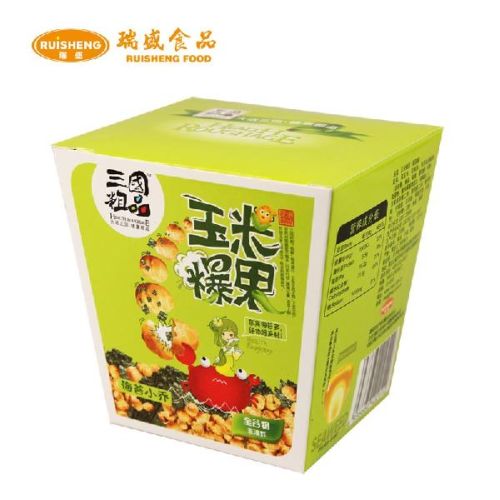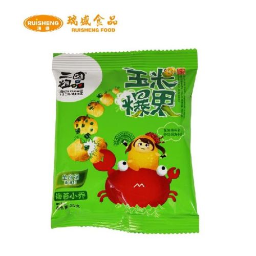 玉米爆果以整粒糯玉米为原料, 经过传统工艺精制而成, 是全糯玉米食品, 含有丰富的蛋白质, 膳食纤维, 维生素和矿物质等, 营养价值高, 易于消化吸收, 全谷物食品.