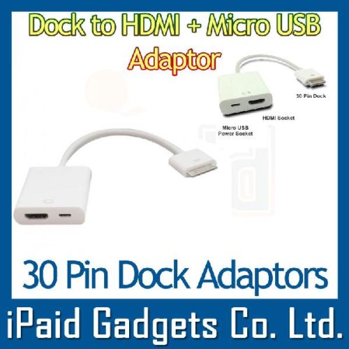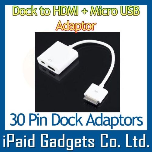 Dock 30P Male To HDMI Female ( IL=0.15M) +Micro USB Female, interface cover with gold/ niker plated, iron cover with nickel plated, white jacket, white assemble shell
