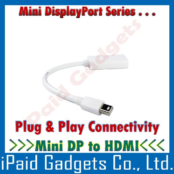 MiniDisplayPort Male To HDMI Female 32AWG IL=0.15M, interface cover with gold/ niker plated, iron cover with nickel plated, white jacket, white assemble shell