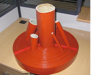 耐高温玻璃纤维套管, 温度在1000°C, 短时温度1380°C, 安装方便, 广泛应用在电力, 化工, 冶金及其他高温领域.