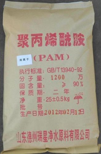 污水和有机废水的处理: 本产品的酸性或碱性介质中均呈现阳电性, 这样对污水中悬浮颗粒带阴电荷的污水进行絮凝沉淀, 澄清是极为有效的. 如酒精厂废水, 啤酒厂废水, 味精厂废水, 制糖厂废水, 肉制品厂废水, 饮料厂废水, 纺织印染厂的废水等. 用阳离子聚丙烯酰胺要比用阴离子聚丙烯酰胺, 非离子聚丙烯酰胺或无机盐效果要高数倍或数十倍, 因为这类废水普遍带有阴电荷.