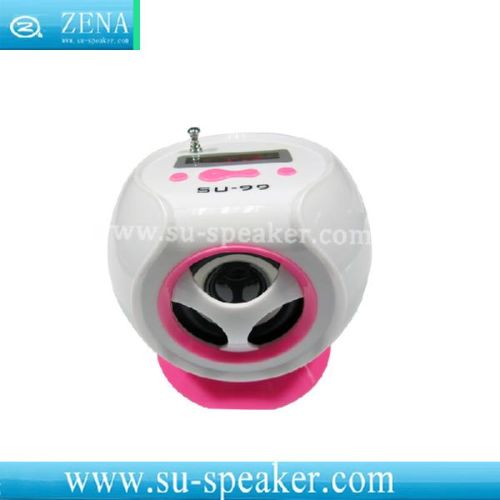 Gift LED/ USB Laptop Card Reader Speaker SU-99 Feature 1. LED Display; 2. FM Radio; 3. Support U-Disk, TF Card, 3.5mm LINE-IN to play; 4. DC-5V USB charging; 6. Buttons for MENU, play/ pause, volume and play order. Parameter 1. Output: RMS 2.5W THD=10%; 2. Frequency Response: 150-18000Hz; 3. SNR: ≥80dB; 4. Loud Speaker: 2 inch (extermal diameter 52mm) , magnetic resistant 4 ohms. Accessories Standar 3.5mm audio plug USB supply power cable Package 1. Product Size: 10.4*9.4*8.9 cm; 2. Weight: 0.200kg. |