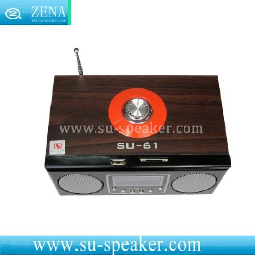 LED Screen USB Mp3/ Mp4 Mini Digital Speaker SU-61 Feature 1. LED Screen; 2. Wooden Box; 3. Remote Control; 4. FM Radio; 5. Support U-Disk, SD Card, 3.5mm LINE-IN to play; 6. DC-5V USB charging; 7. Buttons for play/ pause, volume and play order. Paremeter 1. Output: RMS 5W (2.5W+2.5W) THD=10%; 2. Frequency Response: 150-18000Hz; 3. SNR: ≥80dB; 4. Loud Speaker: 2 inch (extermal diameter 50mm) , magnetic resistant 40hms. Accessories Standar 3.5mm audio plug USB supply power cable Remote control Package 1. Product Size: 18.0*11.2*8.0 cm; 2. Color Box Size: 19.7*13.0*10.0 cm; 3. Weight: 0.670kg. |