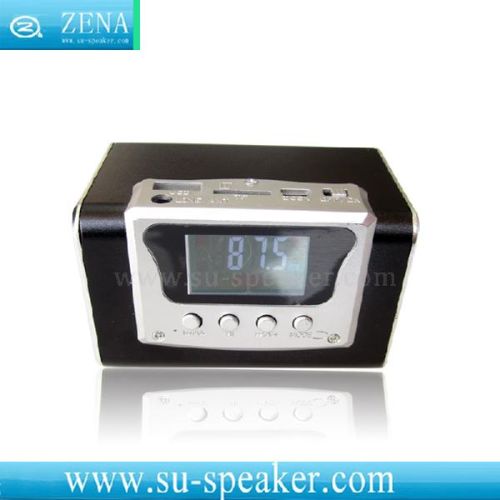 Fashion FM Radio TF Card Phone Speaker ST-71 Feature 1. LCD Screen; 2. FM Radio; 3. Support U-Disk, TF Card, 3.5mm LINE-IN to play; 4. DC-5V USB charging; 5. Aluminium alloy shell; 6. Buttons for MENU, play/ pause, volume and play order; 7. Color: Gren, Pink, Silver, Blue, Black. Paremeter 1. Output: RMS 5W (2.5W+2.5W) THD=10%; 2. Frequency Response: 150-18000Hz; 3. SNR: ≥80dB; 4. Loud Speaker: 2 inch (extermal diameter 52mm) , magnetic resistant 4 ohms. Accessories Standar 3.5mm audio plug USB supply power cable Package 1. Product Size: 9.1*5.6*5.6 cm; 2. Color Box Size: 12.9*7.4*6.7 cm; 3. Weight: 0.280kg. |
