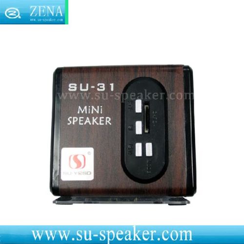 Mini Portable TF Card Computer Sound Box Speaker SU-31 Feature 1. Wooden Box; 2. FM Radio; 3. Support TF Card, 3.5mm LINE-IN to play; 4. DC-5V USB charging; 5. Buttons for play/ pause, volume and play order. Paremeter 1. Output: RMS 5W (2.5W+2.5W) THD=10%; 2. Frequency Response: 150-18000Hz; 3. SNR: ≥80dB; 4. Loud Speaker: 1.5 inch (extermal diameter 36mm) , magnetic resistant 40hms. Accessories Standar 3.5mm audio plug USB supply power cable Package 1. Product Size: 7.1*6.3*5.9 cm; 2. Weight: 0.180kg. |