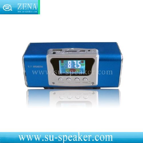 Aluminium Alloy TF Card FM Radio Mini Mp3 Speaker ST-66 Feature 1. LED Screen; 2. FM Radio; 3. Support U-Disk, TF Card, 3.5mm LINE-IN to play; 4. DC-5V USB charging; 5. Aluminium alloy shell; 6. Buttons for MENU, play/ pause, volume and play order. Paremeter 1. Output: RMS 5W (2.5W+2.5W) THD=10%; 2. Frequency Response: 150-18000Hz; 3. SNR: ≥80dB; 4. Loud Speaker: 1.5 inch (extermal diameter 50mm) , magnetic resistant 4 ohms. Accessories Standar 3.5mm audio plug USB supply power cable Package 1. Product Size: 12.8*5.0*5.0 cm; 2. Color Box Size: 15.1*7.2*6.0 cm; 3. Weight: 0.320kg. |