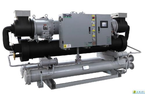 机组采用国际先进半封闭螺杆式压缩机, 电机, 螺杆一体化, 无轴封渗漏之忧, PLC可编程控制器微电脑控制, 并结合我司高效防腐蚀蒸发器, 提高换热效率, 冷凝器也采用防腐设计, 利用海水为冷却水, 减少冷却塔等辅助设备的投入. 根据生产线的数量和规格, 可选用不同冷量的冷水机组, 单台机组制冷量范围: 9.2KW~4090KW, 可并联多台机组同时使用.