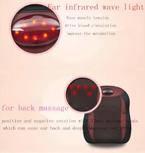 1. The upper parts with two 9cm massage heads could imitate real people's massage, which could knead the neck deeply. It could enhance the blood circulation and metabolism of neck, strengthen the muscle, relieve the muscle spasm, remove muscle fatigue, relax muscle, remove ache and recover energy.