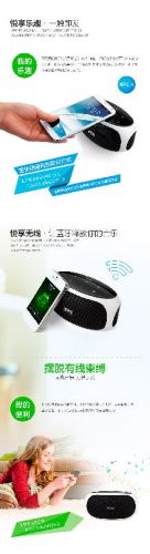功能特点 蓝牙无线连接, NFC快速配对, 音乐播放, 触控锁定