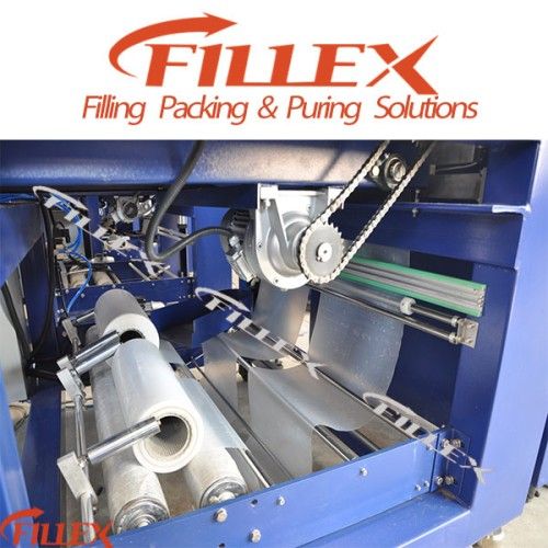 4. Bottle entering, Auto unscrambling bottle, Pushing bottle, Heat sealing-Saw cutting, Pressing PE, Shrink, Cooling automatically