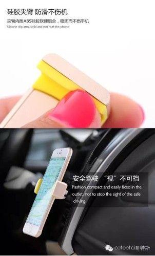 硅胶夹臂,牢固不伤手机。 时尚小巧,容易固定在YHE插座,不停止的安全驾驶视线。