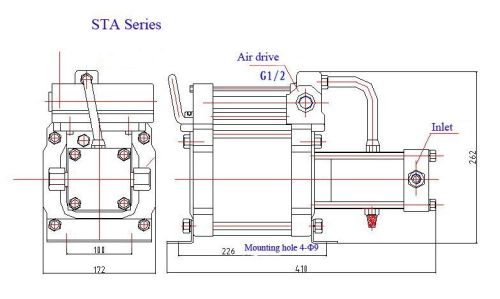 STA60 | 60: 1 | 25 | 362.5 | 480 | 6960 | 480 | 6960 | 60PL | G1/2 | NPT1/4 | NPT1/4 | 61 (PA=40bar) |