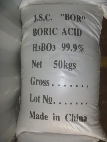Boric Acid Boric acid 99.6% GB530-90 Content of H3BO3% 99.6% min B2O3 56.5% min Water insoluble matter 0.01% max Sulfate (as SO4) % 0.10 % max Chloride (as Cl) % 0.05 % max Fe% 0.002% max Apearance: Colourless or white odourless crystalline solid Packing: 25kg plastic woven bag, 22MT/ 20'FCL Usage: It is chemical used for making ceramics, glazes, cements, wicks, food preservatives, special glasses; Also for leather dressing compounds for preparation of hides prior to tanning; Artificial precious stones; As flux in metallurgical industry, fire-proofing compositions and linings for safes; Also for pigments; Enamel paints, paper glazes, cosmetics, soaps, textiles, medicines, etc. |