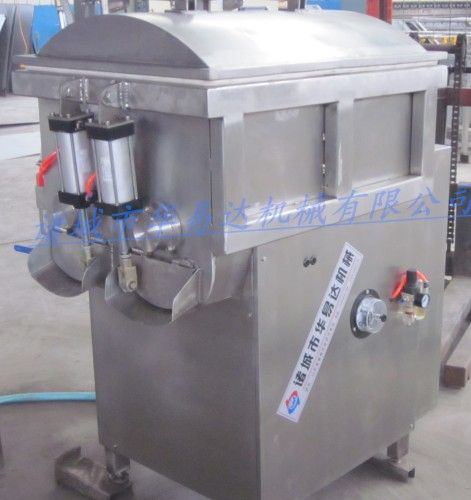 真空搅拌机是参照国际同类先进产品的特点, 同时结合我国肉制品加工工艺特点, 自行研制开发的, 使物料搅拌均匀, 充分膨胀, 无气泡, 弹性好, 色泽鲜艳并最大限度地提取了蛋白质, 可任意设定真空度, 更适合各工工艺要求, 是改变产品品质的理想设备.