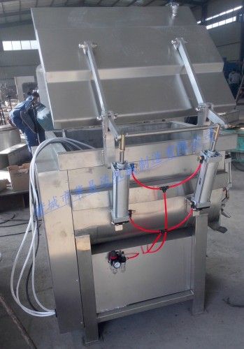大型真空拌馅机通过真空装置使物料背负压后膨胀同时被桨叶进行径向翻滚, 轴向回流, 完成搅拌功能; 物料的搅拌均匀, 充分膨胀, 无气泡, 弹性好, 色泽鲜艳并最大限度的提取了蛋白质, 可任意设置真空度. 适合各种工艺要求, 是改变产品品质的理想设备.
