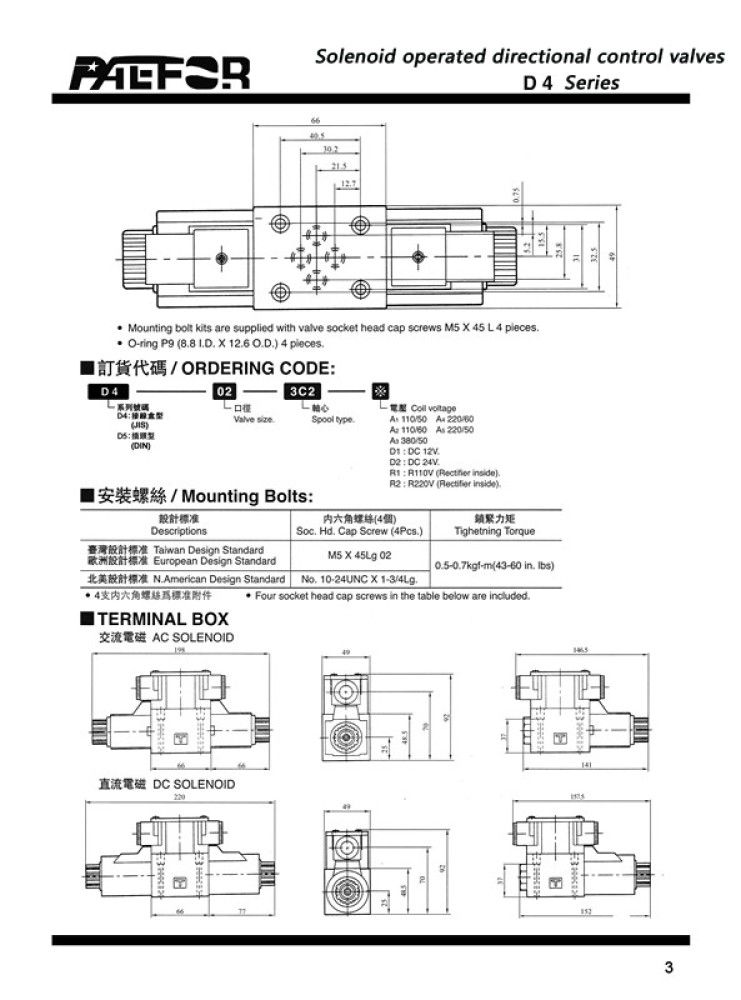 Paefor brand D4-02-3C2 Solenoid operated directional control valves