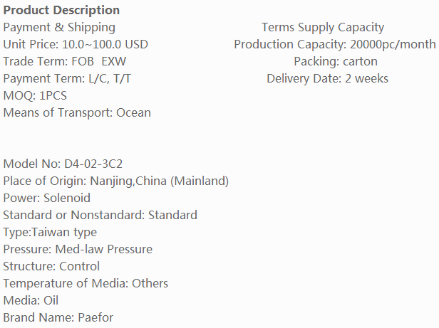 Paefor品牌D4-02-3C2电磁操作的方向控制阀