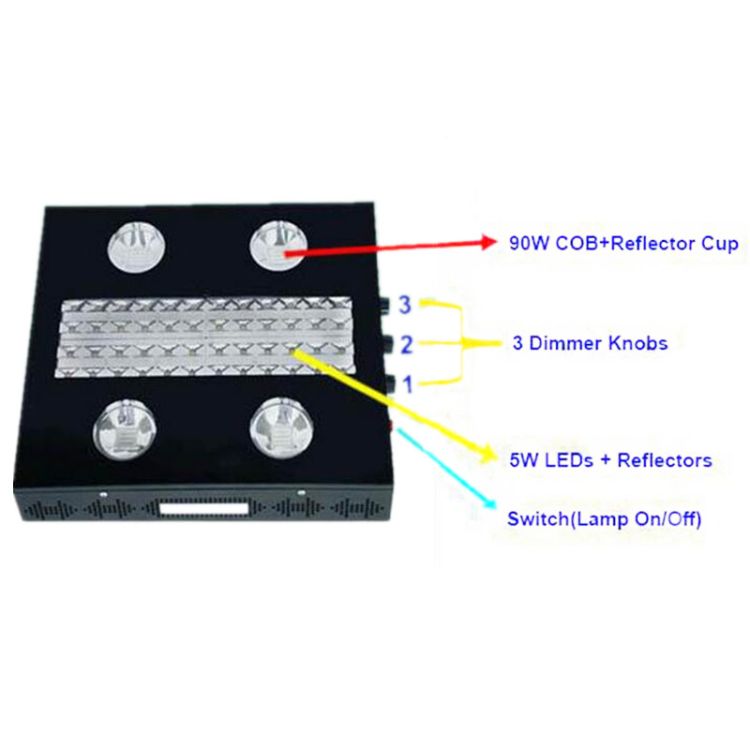 3. Adjustable output for different growth stages. 3 dimmers to control and adjust the light spectrum