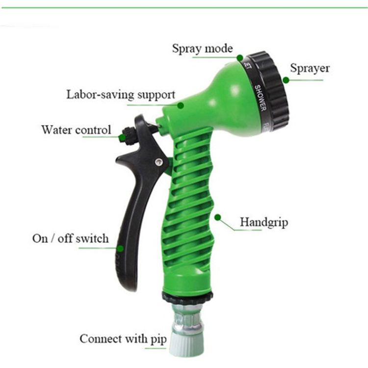 T他的花园软管永远不会缠结,扭曲或扭结,这是灵活和易于处理和存储的存储。有7种喷水模式,r以花洒,洗车,清洁地板为例。