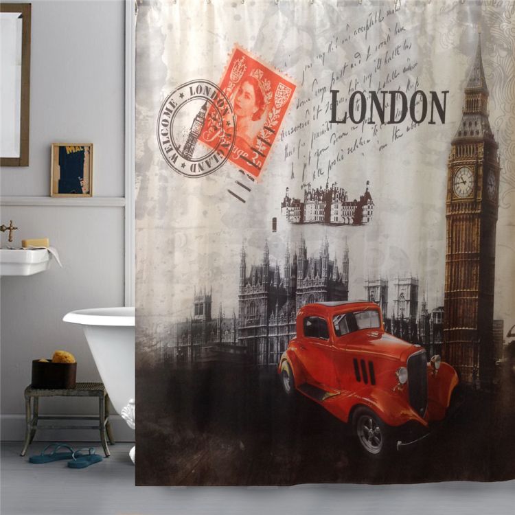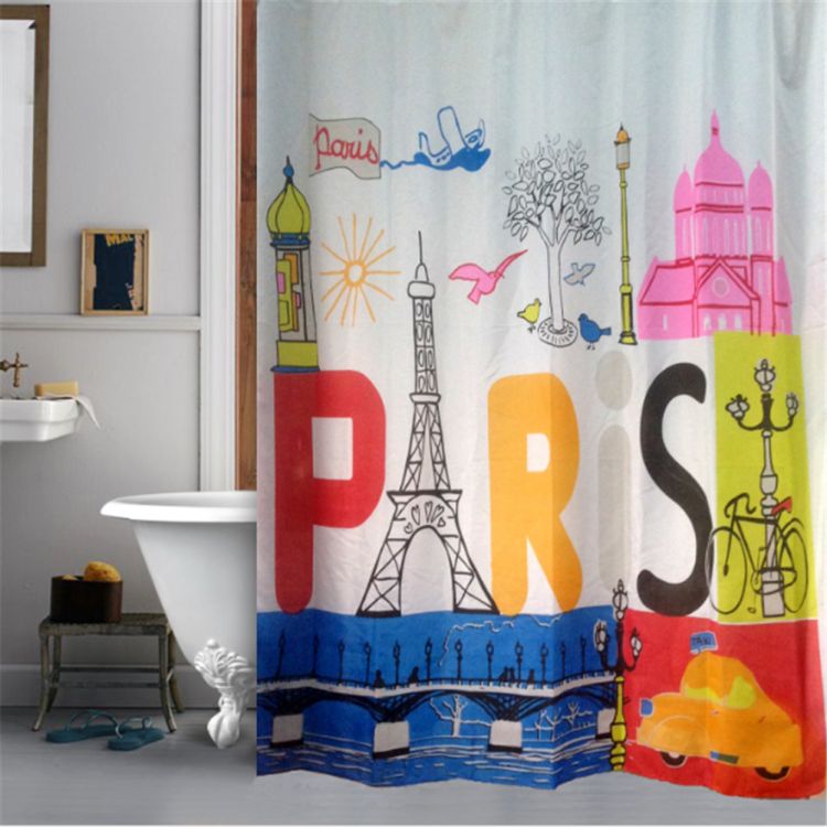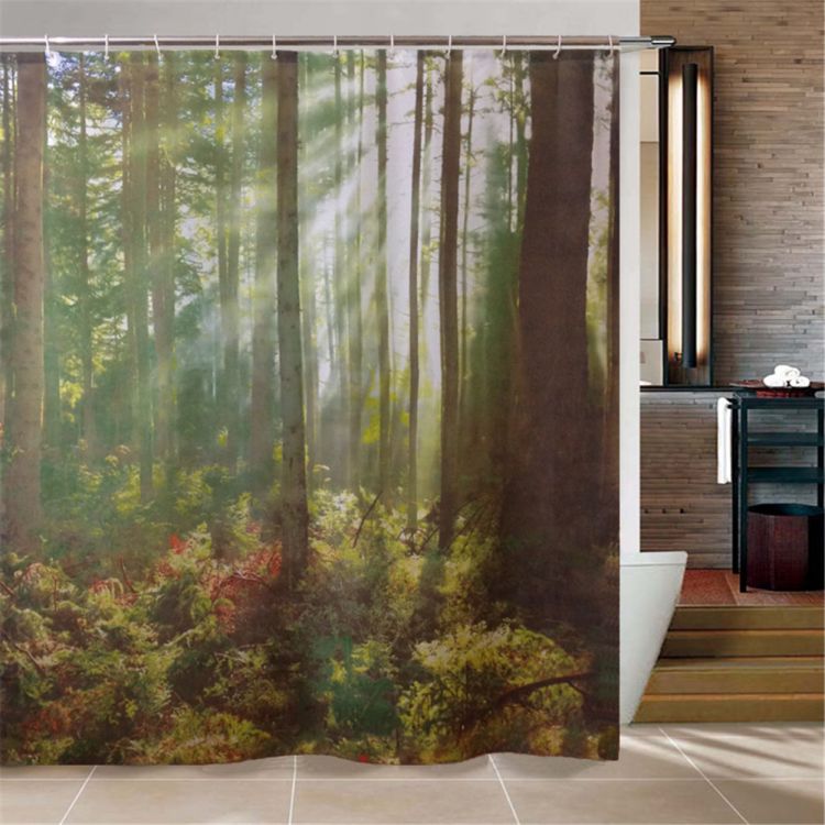 淋浴帘各种图案防水浴室家居装饰与钩风景