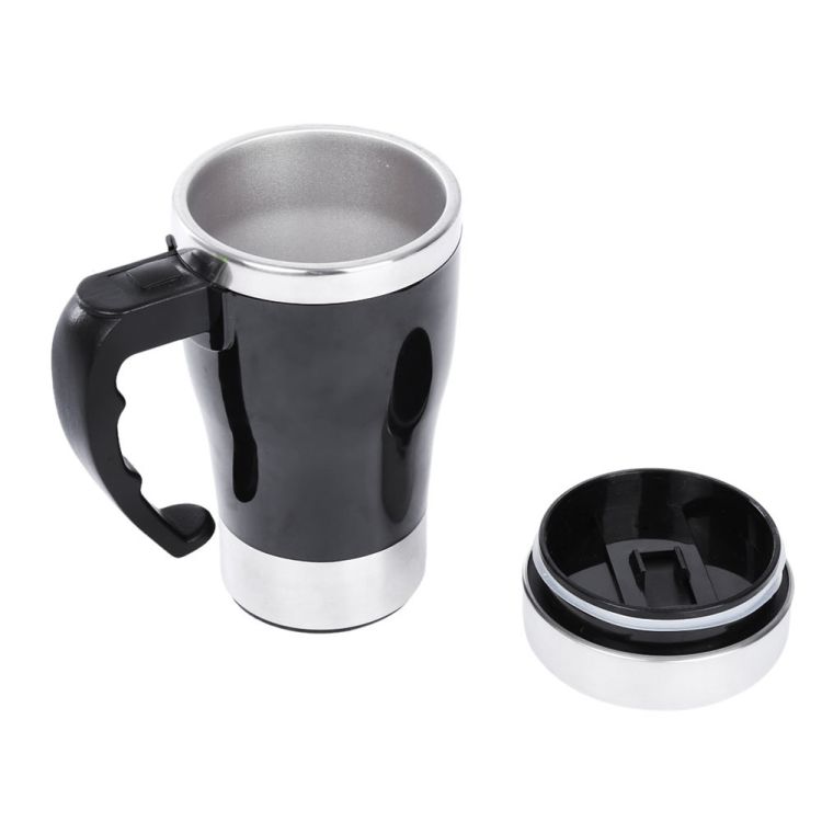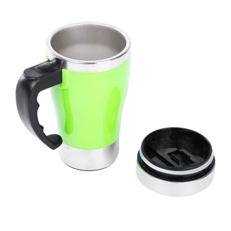 The inner material is food grade plastic, safe and healthy; the outer material is stainless steel, so the mug is not easy to be broken.