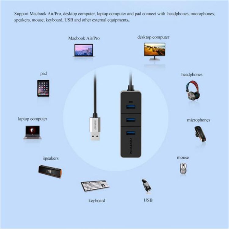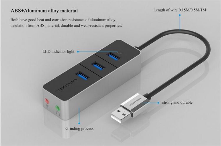 高速3端口USB 2.0与PC笔记本电脑适配器的音频