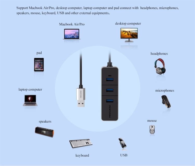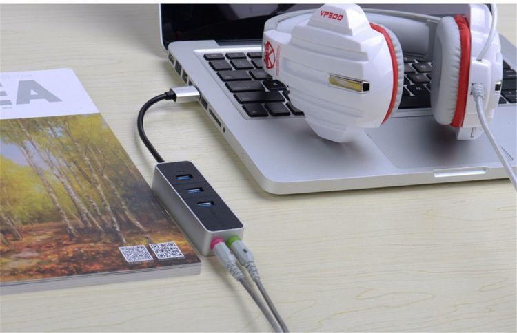 高速3端口USB 3.0 HUB带有Macbook PC笔记本电脑适配器的音频